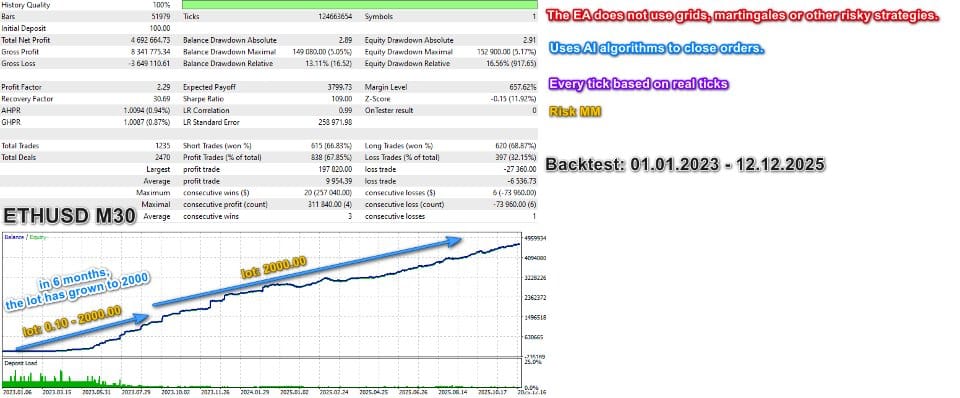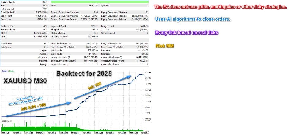 The EA does not use Martingale, Grid, or other strategies with an increase in the lot.