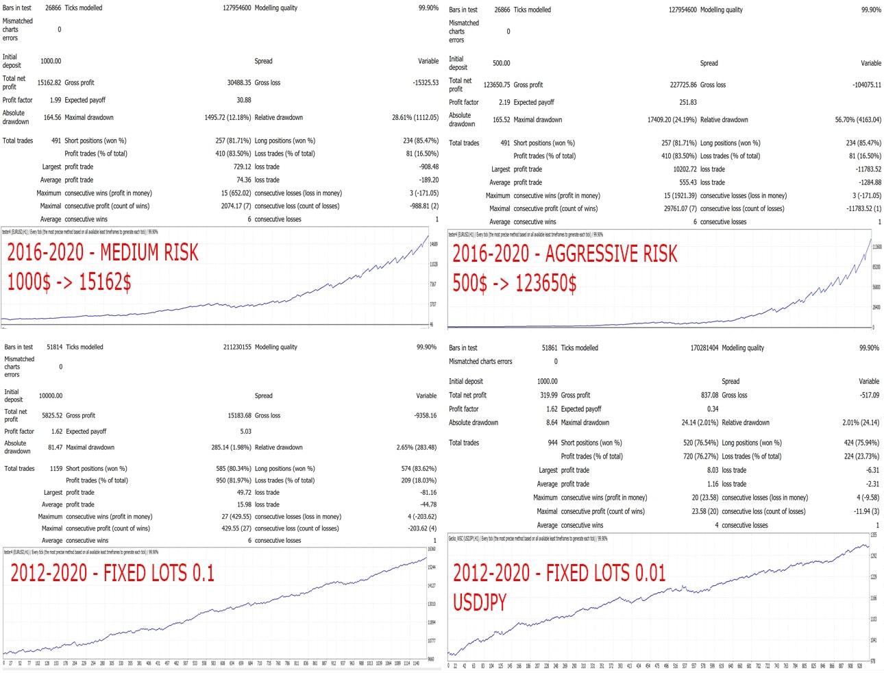 Works on EURUSD, GBPUSD, USDJPY, AUDUSD Same logic, just plug different preset files