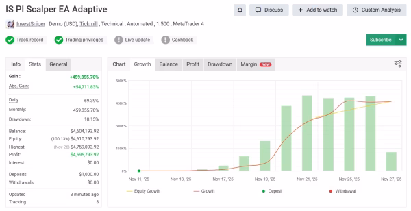 Because IS PI Scalper EA never scales into losses, account risk remains transparent.
