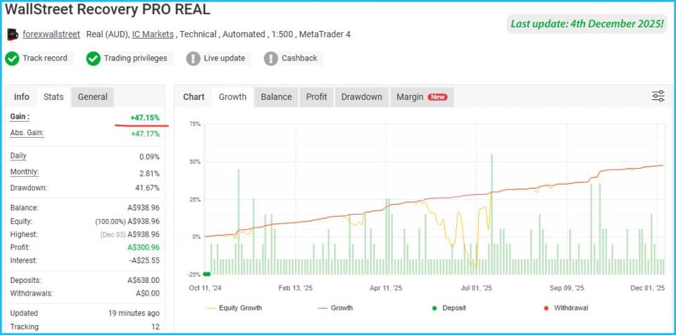 Forex trading can move from calm to chaotic in seconds. Even a strong plan can struggle when price spikes catch you off guard. WallStreet Recovery PRO steps in here. Built on the legendary WallStreet Forex Robot core, this fully automated trading system adds a smart Recovery Algorithm to reduce drawdowns and aim for steady results.